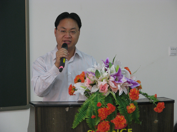 广西中医学院学工处处长冼锦华就《新形势下如何做好辅导员工作》对赛院辅导员进行培训