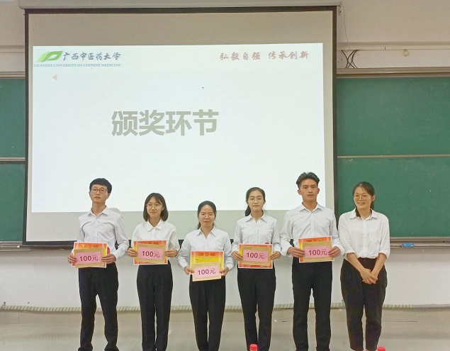 大赛评委由广西柳州医药股份有限公司蓝春亮、广西仙茱中药科技有限公司覃壮元、柳州桂中大药房连锁有限责任公司张苗苗、广西康晟制药有限责任公司张婷等四名用人单位的人事主管以及药学院谢锋老师组成。此次大赛共有22名选手参赛,药学院的辅导员教师们出席了此次大赛。