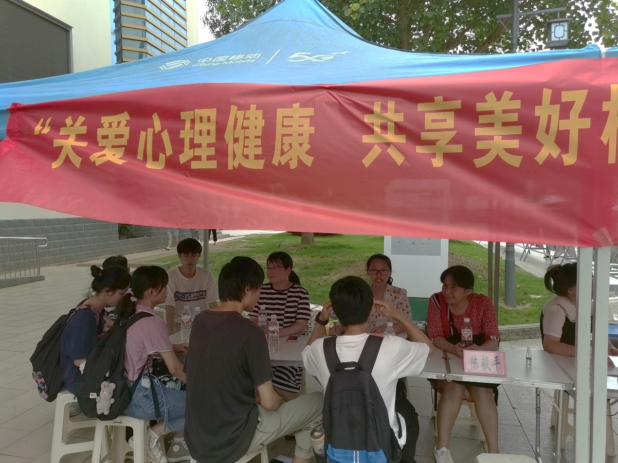 近年来,大学生心理健康问题引起了社会、学校、家庭的广泛关注和思考,关注大学生心理健康很有必要。基于此,药学院分析药分药化党支部于2020年6月1日中午,在仙葫校区食堂门口,开展党史学习教育“我为群众办实事”实践活动——“关爱心理健康、共享美好校园”主题心理健康宣传活动,面向大学生宣传心理健康知识、提供现场咨询,引导大学生关注自身心理健康。