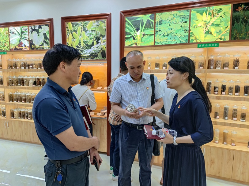 活动主要内容包括三部分进行:党章专题学习交流、支部党建工作交流;业务交流;参观中药特色展馆。首先,蒋林给党员同志做党章和党史学习教育专题讲座;接着,双方党支部书记分别介绍支部的基本情况、党建工作经验、支部三会一课主题党日党史学习教育情况、党员亮身份等做法和体会,我支部就医院药房中药饮片验收实践中发现中药加工炮制存在的一些问题进行了现场教学交流。随后,党员同志们还参观了中药民族药辨识馆、中药炮制实训中心等场地。