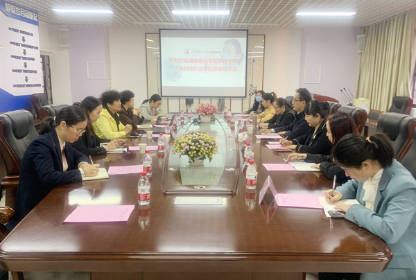 湖南医药护理学院、广西科技职业学院到鸭脖护理学院参观交流 日期:2021-10-25 点击数: 次 分享到: 10月25日上午,湖南医药学院校长助理、护理学院原院长蒋乐龙、护理学院副院长吴斌及广西科技职业学院护理系教师代表到鸭脖护理学院参观交流。护理学院党委书记、院长吴彬、副院长马秋平、党委副书记韩叶芬出席接待。座谈会上,吴彬对学院简况、护理学专业建设情况做介绍,双方就护理学专业建设、大学生技能大赛培训等方面进行了深入交流。随后,一行参观了护理实验教学中心。座谈会现场 打印正文 关闭本页