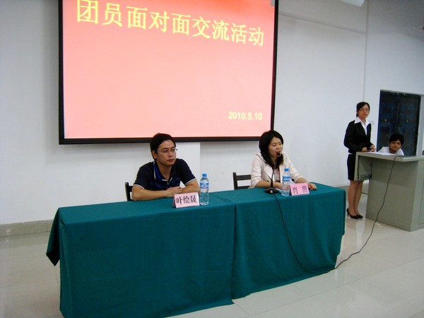 讲座后,现场的团员进行面对面交流活动,气氛十分活跃。叶绘晟老师和肖苗老师就如何做好团支书工作;如何开展班级团会以及什么是党建带团建等问题做解答。团员们热情高涨,进行互动交流。