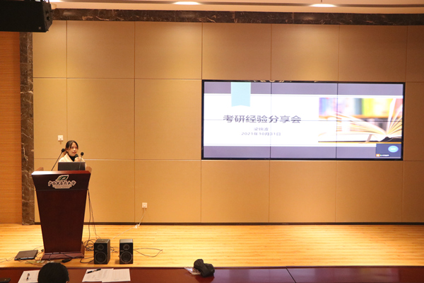 分享会上,梁锦波从“研路概况”“研路规划”“研途方法”“研路答疑”“研路忠告”五个方面展开讲述,分析考研动态,传授考研经验,向同学们推荐了许多关于考研的APP以及练习。周旭华则着重强调了在考研中英语的重要性,告诉同学们要努力学习英语,在备战中要分阶段复习,并向同学们分享了自己分阶段的复习计划,自己是如何平衡备考和实习的。分享会特设的互动答疑环节,更激发了同学们的考研热情,同学们根据自身实际情况与学姐学长进行有针对性的交流,收获满满。