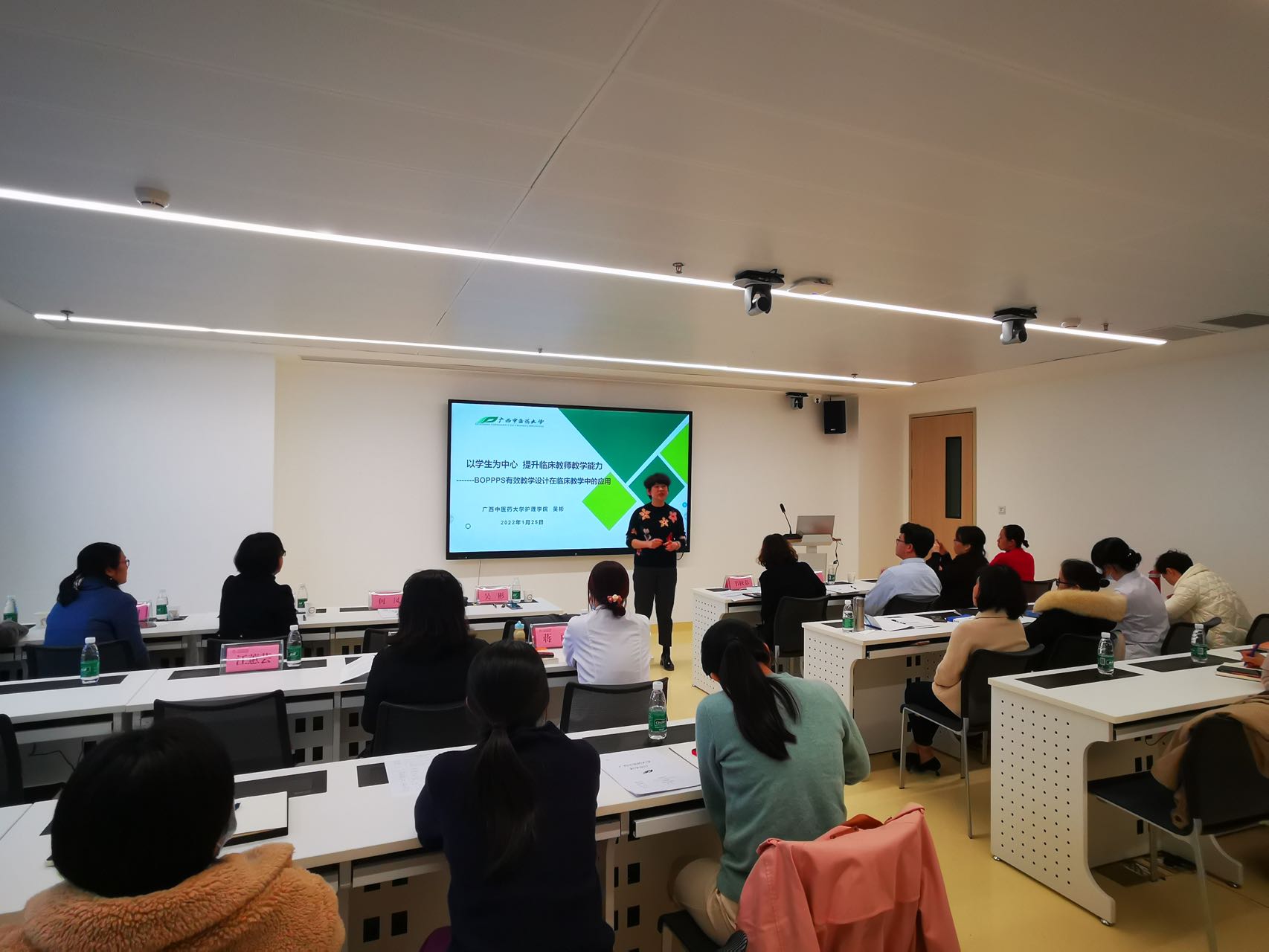 为加强助产学专业师资队伍建设,规范兼职教师教学流程,提高教学能力,增强医院兼职教师与学院交流。2022年1月25日下午,护理学院党委书记、院长吴彬教授一行5人赴广西妇幼保健院进行教学专题培训、交流活动,妇幼保健院相关领导、兼职教师20余人参加。