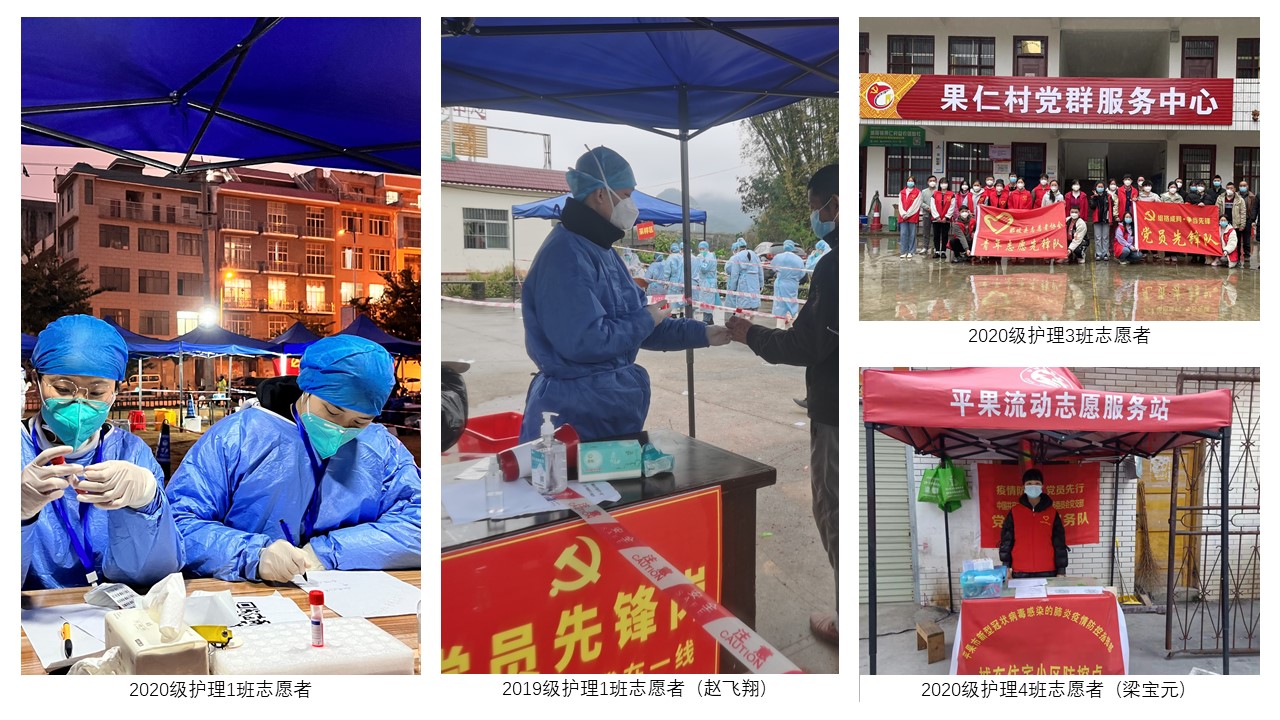 战“疫”关头,守“护”一线——护理学院学子积极投身抗疫一线 来源:护理学院 作者:文/彭薇谕 日期:2022-02-18 点击数: 次 分享到: 祖国边陲重地百色,在虎年春节期间吹响了战“疫”号角,为打赢百色这场疫情防控阻击战,护理学院2019级的赵飞翔、杨宽、2020级的梁宝元、2021级的凌文旭等23名寒假返乡的同学们积极投身到户籍所在的一线抗疫志愿服务工作中,他们不畏寒风、不惧严寒,身着防护服,坚守岗位,行动在核酸检测、物资保障、体温测量、秩序维持等志愿服务工作中。同学们用实际行动守护人民的健康,彰显了护理学子的责任与担当。 打印正文 关闭本页
