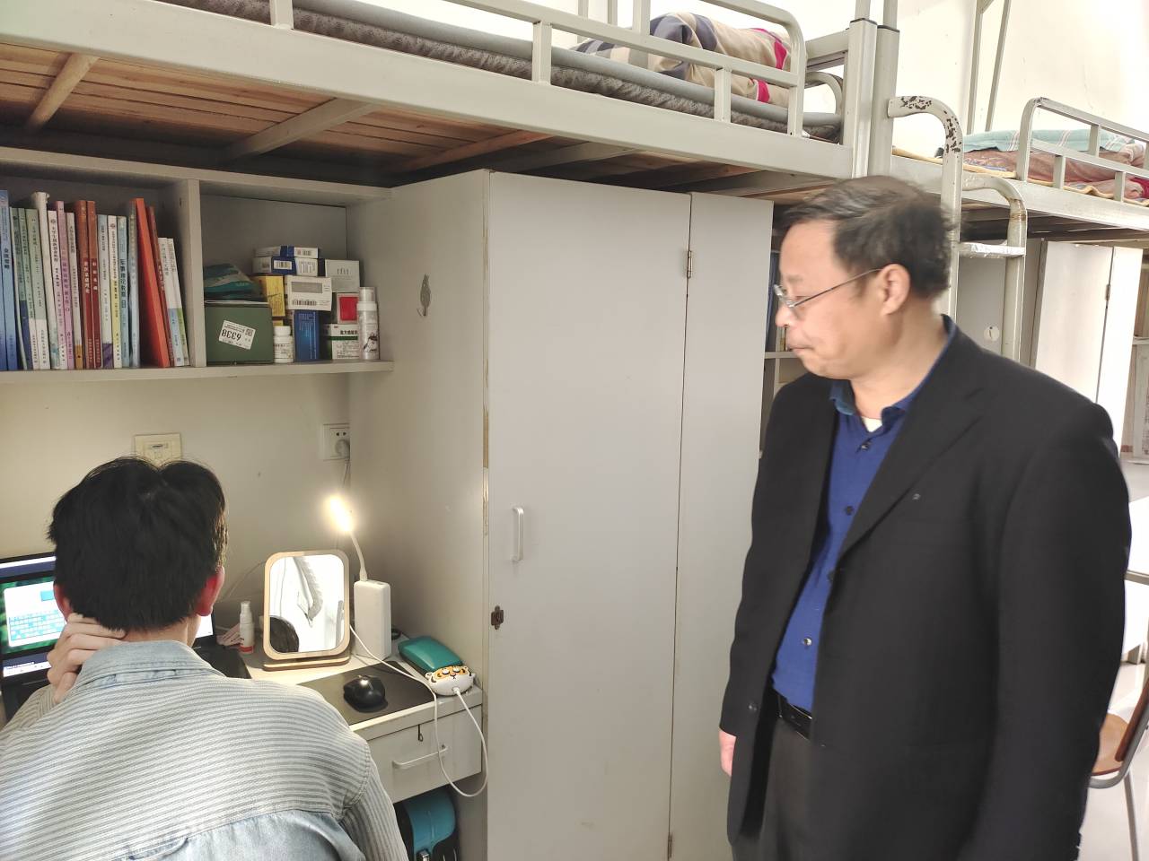 走访过程中,蓝毓营院长十分重视同学们的线上学习状况,还针对走访中发现的问题提出了宝贵的意见并督促同学们及时整改:第一,每天要保持宿舍内的通风;第二,实行宿舍就餐应该尤其注意垃圾清洁问题;此外,兰老师与刘老师在宿舍走访过程中,强调了课程的重要性,并督促同学们在相对放松的网课环境下也要提升学习积极性,课前主动预习并认真听课。