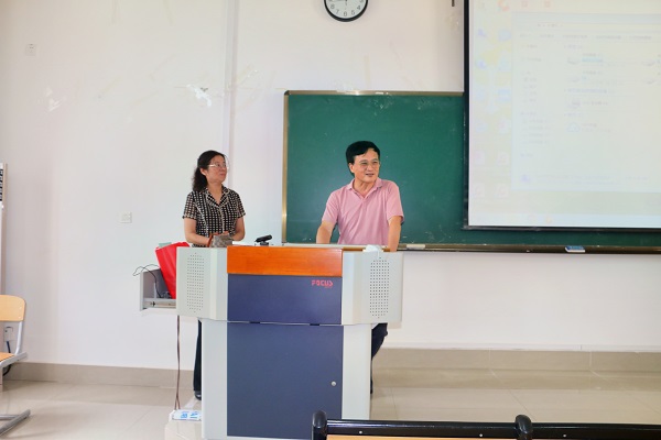 桃李满天下,雨露润春华。6月22日上午上午,踏着下课铃声,药学院党委、行政、工会代表蒋林、卢汝梅、李豫萍及分析化学教研室全体教师手持鲜花蜂拥至2-309教室。今天是药学院分析化学教研室覃洁萍教授退休前的最后一堂理论教学课。大家纷纷向覃洁萍老师表示祝贺。
