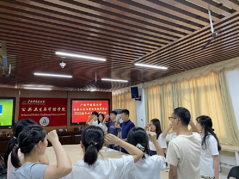 会上,毕业生党员一同重温入党誓词,希望毕业生党员照顾好身体,积极努力工作。