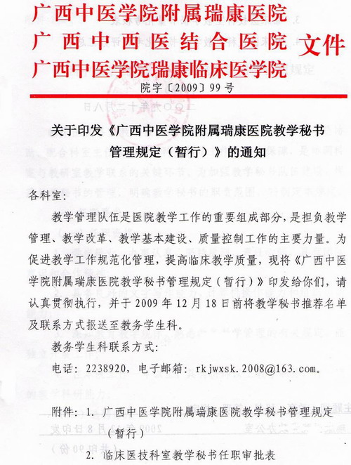 聘任临床医技科室教学秘书,负责科室后期教学的日常事务