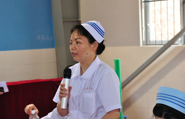 比赛结束后,一位参赛的同学说:“比赛前比较紧张,感觉自己没准备好,但很高兴在比赛中能发挥出正常水平。” 韦衡秋、胡艳宁主任分别为比赛作点评,胡主任说:“同学们的精神风貌较好,整体表现不错,操作也很熟练和顺利,能看出是经过刻苦训练的,但不足的是同学们面对模型亲切感不够,没把他们当做真正的病人,语言太书面化,没能真正体现出‘人文护理’的理念,希望今后有待加强和改进。”