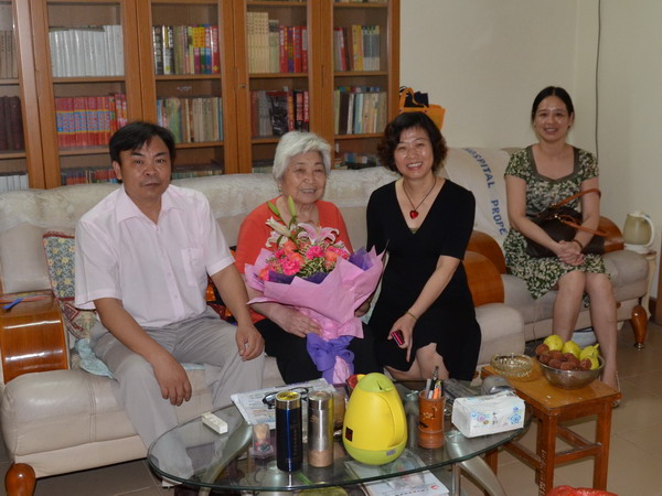 在庆祝建党九十周年前夕,6月9日上午,护理学院党委岑家铭书记、吴彬院长及办公室曾红主任来到离休干部赵淑明同志家中,亲切慰问这位革命老同志。