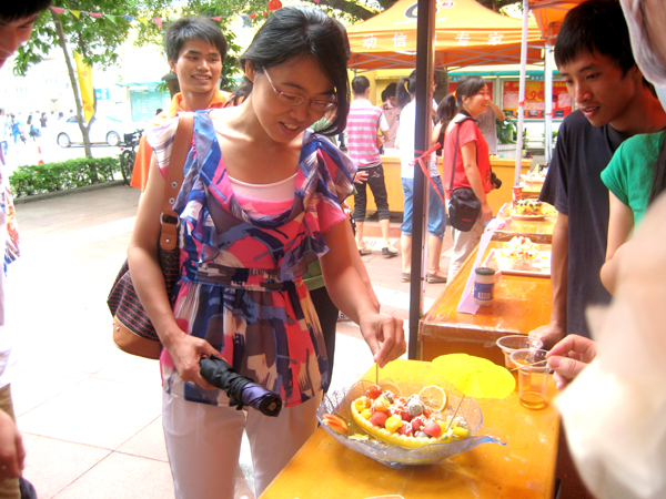 比赛评出一等奖一名、二等奖两名、三等奖三名、最佳创意奖一名及最受欢迎奖一名,八个参赛队的作品全部于成果展当天现场制作并展出。此次成果展吸引了很多其他专业的同学过来参观学习,同学们对展台上的药膳水果沙拉赞叹不已,都表示食品科学与工程专业的同学们创意独特,动手能力强。王春花副书记对食品科学与工程专业举办此次比赛表示赞扬。她希望同学们不要骄傲,要继续努力学习专业文化知识,举办更多具有创新性的专业文化活动,不断提高专业文化水平。易蔚博士则向食品科学与工程专业的同学们提出了三点殷切希望:一,要不断努力,不可骄傲自满;二、要团结协作;三、提高综合能力,做食品科学与工程专业的新型人才。