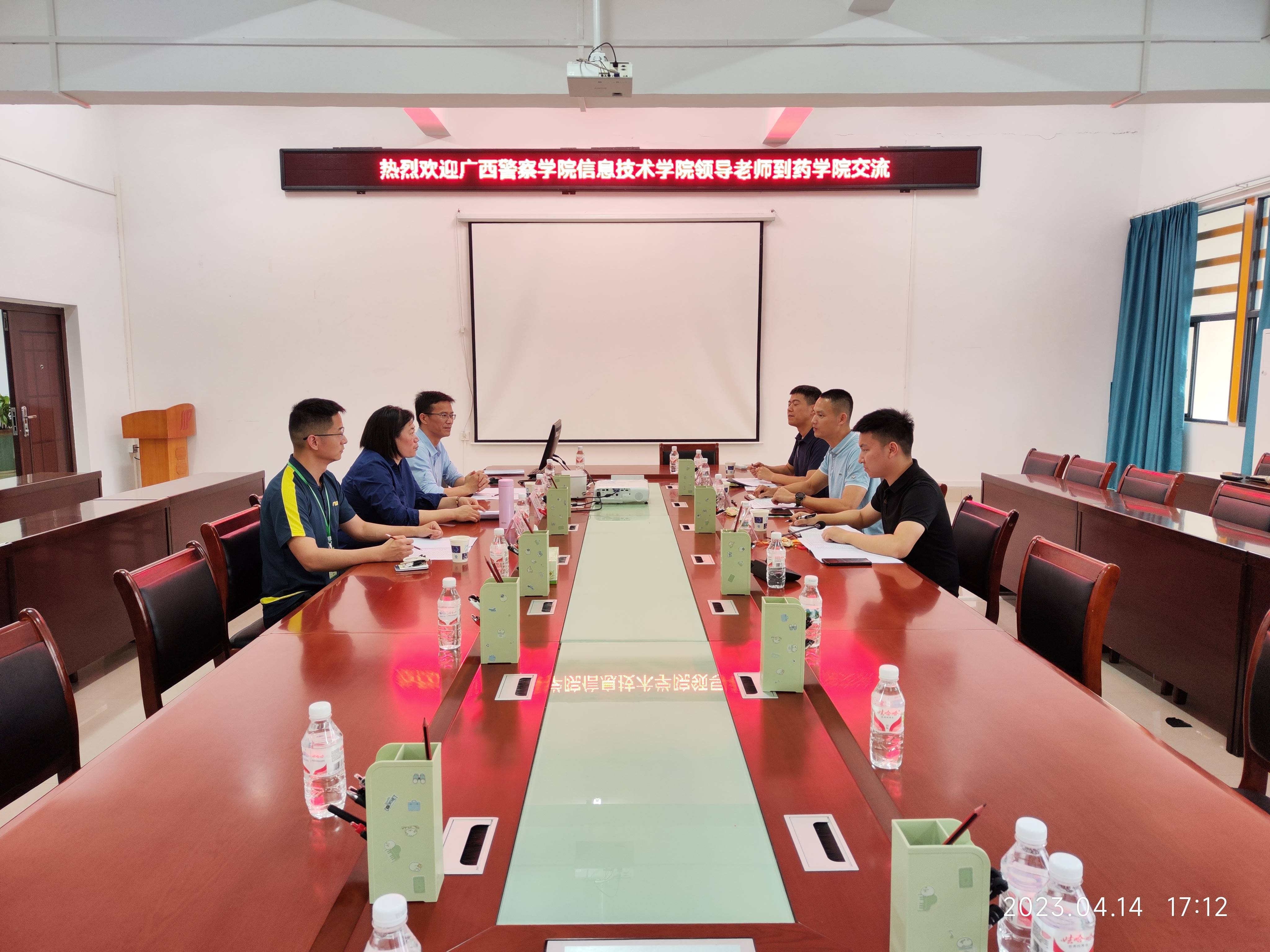 广西警察学院信息技术学院到药学院交流座谈 来源:药学院 作者:图吴玉峰 文蒋佩齐 日期:2023-04-15 点击数: 次 分享到: 4月14日下午,广西警察学院信息技术学院团委书记韦新宇,辅导员潘卫华、耿光明一行3人到我院交流学生就业、育人、管理等相关工作。药学院党委副书记李豫萍,学办主任凌勇威、辅导员吴玉峰参加了座谈会。会上,双方就大学生职业生涯规划发展、毕业生就业、学生考研,学生党支部、社团加强共建等工作进行了深入交流和探讨。广西警察学院一行参观了药学院中药辨识馆、道地药材馆,大学生活动中心。参观药学院展馆座谈会现场 打印正文 关闭本页