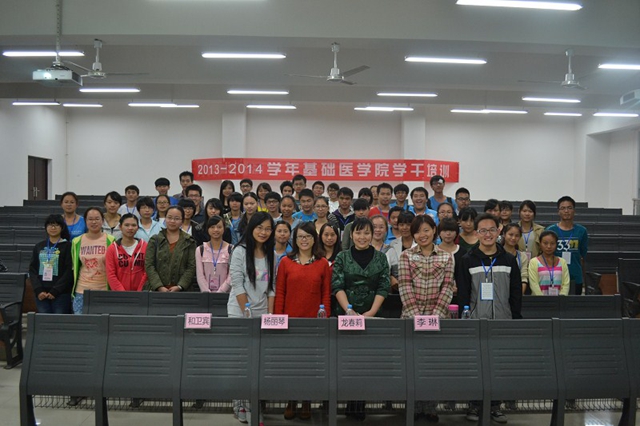 为全面提升学生干部素质,打造一支思想品德好,学习工作能力强,综合素质高,作风优良,团结创新的学生干部队伍,充分发挥学干在学校与学生之间的枢纽作用,更好地服务于广大学生,基础医学院特举办2013-2014学年学生干部培训系列活动。活动历时10余天,共200多名学生干部参与其中,得到了学校各级师生的大力支持,YABO鸭脖党委宣传部何世全副部长、基础医学院党委龙春莉副书记、学生干部代表杨玉凤、韩璐歆等师生分别作了专题培训。