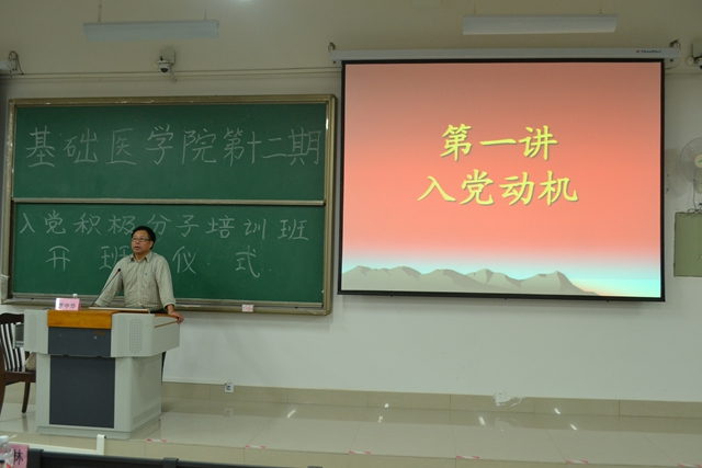 为进一步加强入党积极分子对党的基本知识的学习,提高入党积极分子的思想理论水平,端正入党动机,确保党员发展质量,为发展新党员奠定基础,基础医学院党委于2013年12月4日至8日举办了入党积极分子培训班,校党委组织部李中华部长、基础医学院党委龙春莉副书记,学办全体教师以及学生入党积极分子共250人参加了培训。