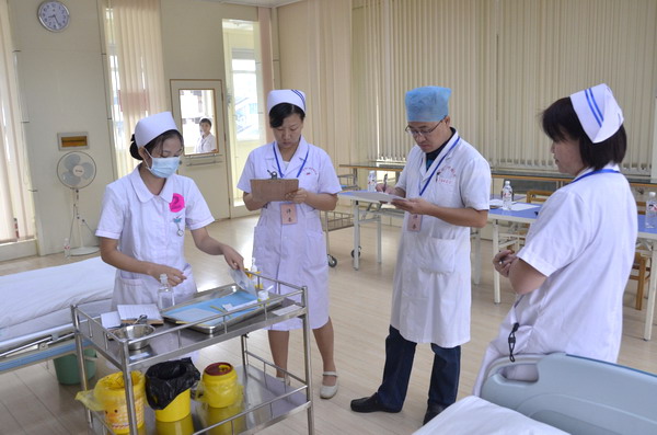 此次护理综合技能竞赛的内容包括理论测试和技能竞赛两部分。我院经过五月份的理论测试,共优选了20名本科护理的同学参加了此次技能竞赛。每位参赛选手均需面对模拟人开展鼻饲法、心肺复苏、密闭式静脉输液三项护理操作技术。在比赛过程中,由三位评委老师按照国家级护理比赛的严格标准对同学们的仪容仪表、肢体语言、操作手法等进行全方位的考核、评分。最终,评选出了12名获奖选手。