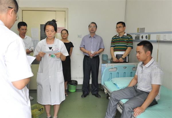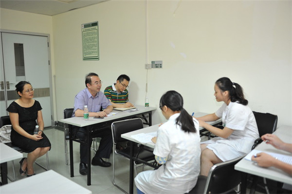 “泛珠”竞赛选手第一阶段的临床培训工作将于8月底结束,为了保证该项工作更加全面深入、充分细致,8月8日上午,第一临床医学院院长黄贵华带领教学部负责人及相关管理人员对老年病科、外五科、针灸科等临床科室的“泛珠”培训和考核情况进行了督察。