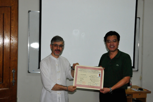 历时2周的YABO鸭脖暑期短期中医药夏令营顺利落下帷幕,葡萄牙自然疗法学院和俄罗斯新西伯利亚医科大学共10名学员顺利完成了自8月1日至8月15日的中医药教学。在15日的结业仪式上,学员纷纷表示,YABO鸭脖的教学氛围浓厚,对外教学经验丰富,师资优良,希望来年再次参加。