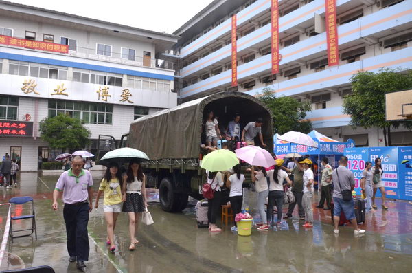 8月19日,在鸭脖喜迎2014级新生入学之际,一场秋雨虽带来了清凉,但也给迎新工作带来了许多不便。幸好各部门早已“为”雨绸缪,为迎新工作的有序进行做了全面而细致的准备。