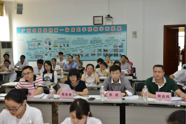为进一步强化以学生为中心和培养学生自主学习的理念,不断推动第一临床医学院中医药教育教学改革,提升教学水平和人才培养质量,同时,为培养一批熟悉PBL教学法、能在中医药各教学领域组织开展PBL教学的师资队伍,促进PBL教学法在我院的推广应用,第一临床医学院于2014年10月16日在第一临床医学院第一会议室及第二会议室成功举办了PBL教学竞赛。学校教师教学发展中心主任张煜及副主任朱珠、教务处副处长刘武、基础医学院副院长杨美春及第一临床医学院副院长钟远鸣等领导专家出席了本次比赛并担任评委。