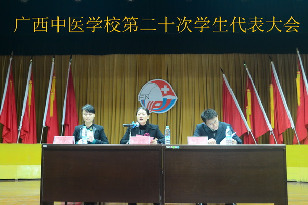 2014年12月2日,广西中医学校第二十次学生代表大会在北湖校区礼堂隆重举行。鸭脖党委副书记罗艺徽、学生科副科长覃梦岚、学生科副科长黎海祥以及各班主任出席会议,本次大会共有455名学生代表参加。