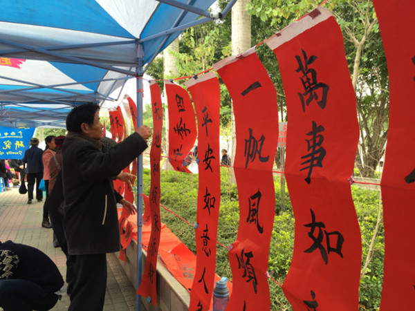 志愿者为群众写春联