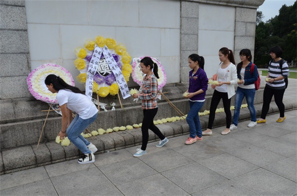 同学们向烈士敬献花