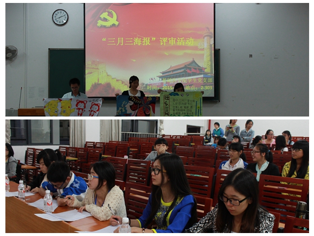 民俗文化知识海报展,前后共历经半个多月,我院全体学生踊跃参与。活动初期,学生充分发挥聪明才智,创新创意,以内容健康向上、形式活泼、渲染力强的表现形式创作具有宣传三月三民俗文化知识作用的作品。在海报征集阶段共收到作品57幅,海报内容新颖,题材多样,色彩丰富,体现了大学生较高的美学艺术水平和创新创造能力,如同学们结合了刘三姐的趣味故事,以“印象刘三姐”为主题的海报创作,如结合节日热点“壮族歌圩节”为热门话题的海报创作。海报评选阶段,基础医学院学生党支部本着“公平、公正、公开”的原则对作品进行客观评分,邀请了学校书画协会成员进行专业评选,李琳老师亲临现场观摩指导和公证,各班团支书和参赛选手代表旁观监督,经过精彩而又激励的角逐,最后评出一等奖作品4幅,二等奖6幅,三等奖5幅,优秀奖10幅。