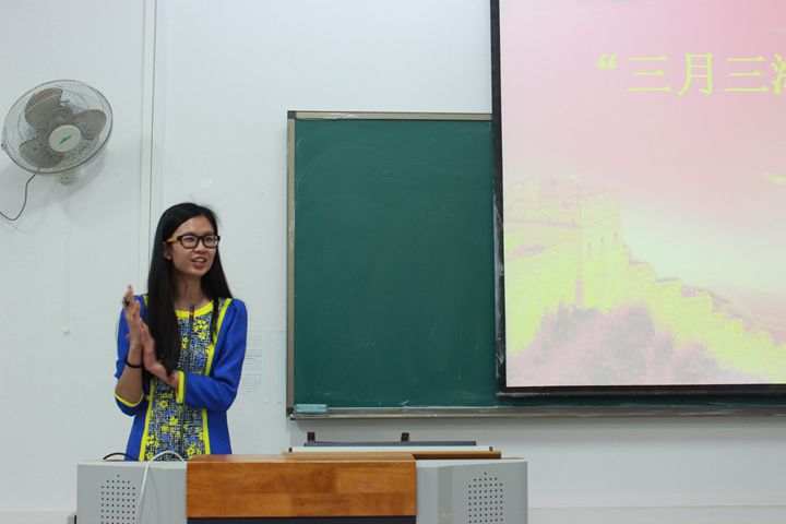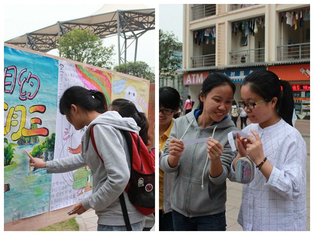 同学欣赏海报并参与三月三民俗知识有奖答题活动