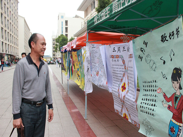 基础医学院党委书记龚名师老师欣赏“三月三”民俗知识海报展