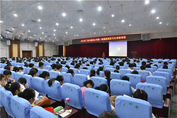 第一临床医学院院副院长钟远鸣为实习生作了岗前培训动员报告。钟远鸣副院长要求同学们进点后必须严格遵守医院的规章制度及实习生管理制度,要把自己当做医院的一员,严格要求自己;要认真学习,努力把在学校学到的理论知识与临床实践结合起来,做一名优秀的临床实习生。