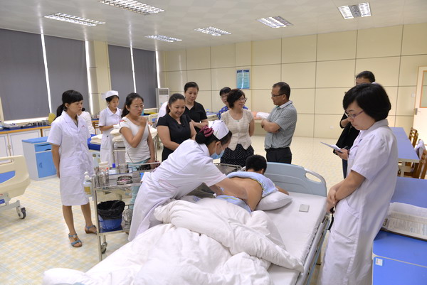 甘肃省天水市卫生学校到广西中医学校参观交流 来源:广西中医学校 作者:钟钊龙 日期:2015-06-13 点击数: 次 分享到: 2015年6月11日上午,甘肃省天水市卫生学校教务处主任杨永庆一行到广西中医学校参观考察,受到中医学校副校长马秋平热情接待。 来访一行首先参观了学校实训中心。随后,双方就实训室建设、教学督导、教学质量监控等方面进行了深入交流,并进行了随堂听课。下午,一行到鸭脖校办产业——广西重阳老年公寓进行了参观。参观实训中心参观实训中心交流座谈会在重阳老年公寓合影 打印正文 关闭本页