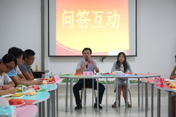 活动伊始,宋南老师和鲁蕴律老师先后致简短的开幕词,充分肯定了各位党员、预备党员和团委学生会同学在学习“两会”精神系列活动中的表现。随后,活动以师生问答的互动形式展开。同学们踊跃地提出自己的困惑和问题,包括即将步入大三所面临实习的困扰、如何对学校频繁的各项活动提起兴趣、如何正确对待爱情、如何培养良好学习与生活习惯、如何处理学习与社团、学生会之间关系等与大学生活密切相关的问题,宋老师耐心地一一为同学们答忧解难,既有幽默生动的事例,又具有深刻的教育意义。最后,本次活动在同学们的欢声笑语中圆满落下帷幕。