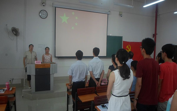 为迎接建党94周年的到来, 7月1日上午,药学院党委组织学院教工党员及新发展的学生党员在仙葫校区教学楼2-303举行“迎七一”宣誓主题活动。此次活动由药学院党委副书记李豫萍主持,学校组织部副部长唐振宇、药学院党委副书记秦华珍,药学院教职工党员代表及49名新入党的学生党员参加了此次活动。