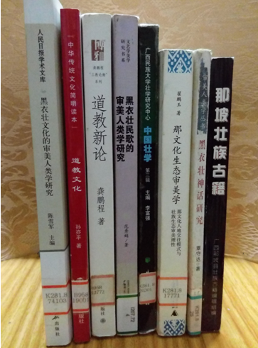 除了进行实地的考察以获取与课题相关的资料外,课题组成员还参观了有关展览和检阅了相关书籍。8月15日, 课题组到广西区博物馆参观了“瓯骆遗粹”(广西百越文化文物陈列)展区,了解了黑衣壮悠久的稻作文化历史;下午,课题组赶赴广西区图书馆的地方文献书库,检索和借阅到与黑衣壮医药文化相关的书籍资料,如《黑衣壮的人类学考察》、《大山里的黑衣壮:那坡黑衣壮文化艺术考察》、《黑衣壮神话研究》等,这些历史 和书籍的获得为此次课题的开展奠定了良好的文献基础。