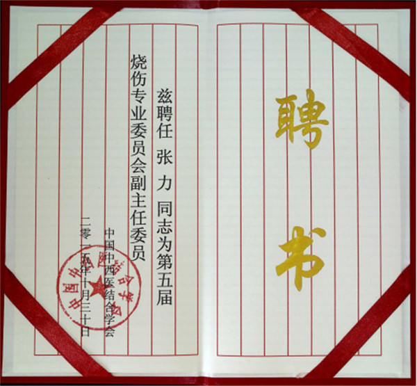张力主任医师被聘为中国中西医结合学会第五届烧伤专业委员会副主任委员