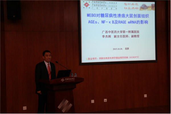 再生科学学术报告会上,10余名烧伤知名专家分别就烧伤救治、康复、创面治疗等方面的诊疗经验和新进展进行了专题学术报告,其中我院外五科李杰辉副主任医师作的“MEBO对糖尿病性溃疡大鼠创面组织AGEs、NF-κB及RAGE mRNA的影响”专题报告得到与会代表的广泛认可与好评。
