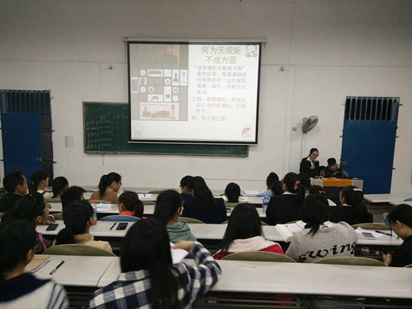 为加强学生遵纪守法的意识,2016年3月27日晚,瑞康临床医学院教务学生党总支与团总支学生会在明秀校区联合开展“无规矩,不方圆”主题团日活动。