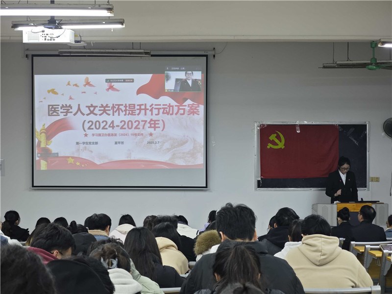 3月9日下午,第一临床医学院教学党总支在明秀校区召开第一季度党课学习交流会。第一临床医学院教学党总支书记罗之瑜,各学生党支部书记、党员、发展对象及入党积极分子400余人参与学习交流。会议由学生党员罗清月同志主持。