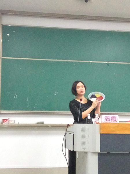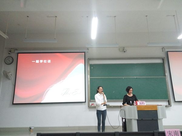 活动最后的环节,周霞老师邀请了壮族同学上台教授同学们日常壮语“你好、谢谢、再见”等,简单实用,将活动气氛推向高潮。此次“人文弘人文”系列主题活动之四----壮文化阐释讲座在同学们的热烈掌声中圆满落幕。
