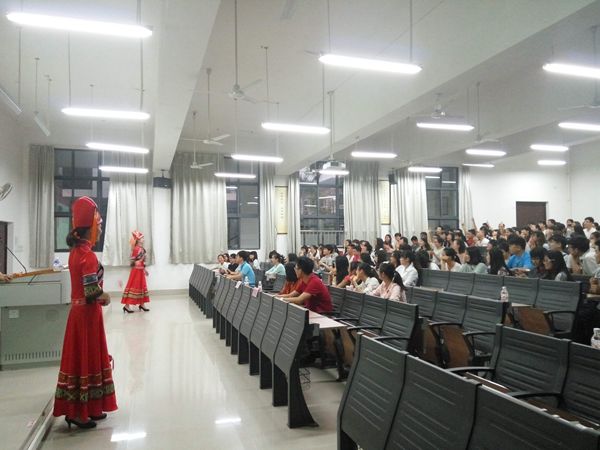 兰阴山跨浴溪南,春破峰颜三月三。为弘扬壮族文化,促进民族团结,人文社科学院于2016年4月10日晚,在教学楼1-101教室举行了以“弘扬民族文化,展示八桂风采”为主题的壮文化阐释讲座。本次活动由我院专业研究民族文化学的周霞老师主持,我院分团委书记宋南老师以及学生工作办公室的鲁蕴律老师出席。我院全体同学积极到场参与。