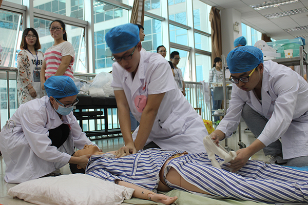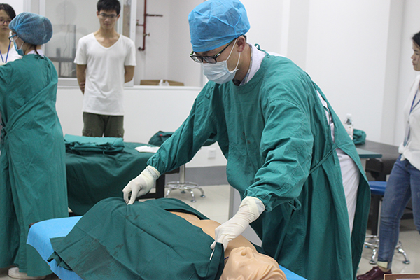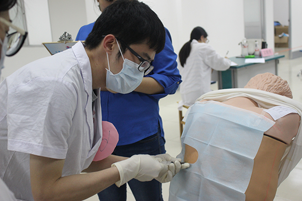 为提升2012级学生临床技能操作能力,以最佳状态迎接鸭脖临床医学专业认证,瑞康临床医学院于2016年4月18日在鸭脖明秀医学实训中心成功举办了以“崇尚医学之德,谱写生命乐章”为主题的第十届临床技能操作大赛。参加大赛的老师有教务学生部主任莫启章、院团委书记叶修廷、教务学生部副主任汪国翔、院团委副书记黄雁南。大赛评委由瑞康临床医学院欧阳国林、朱寿鸿、李日东、董瑜、马晓露、蒋媛静、马叶吴、文俊秀老师和2016年临床技能大赛华南赛区参赛选手担任。瑞康临床医学院2012级临床医学、中西医专业全体学生共243人参加了本次比赛。
