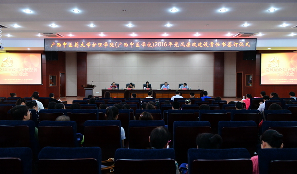 为贯彻落实上级从严治党的相关要求,扎实推进学院党风廉政建设,2016年4月26日,护理学院(中医学校)在北湖校区举行党风廉政建设责任书签订仪式。护理学院党委书记冼锦华,院长吴彬,党委副书记、纪委书记罗艺徽,副院长林原、黄勇及学院全体教职工出席了此次签订仪式,仪式由学院党委副书记、纪委书记罗艺徽主持。
