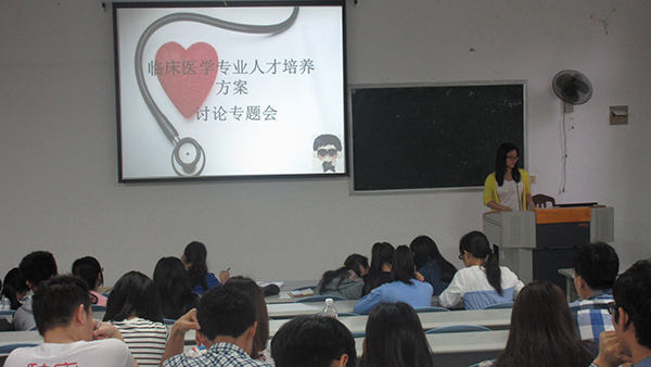 为推进教育改革,开阔视野,将教育理念引导到贯彻落实党的“坚持以德树人,推进教育改革”的精神上,提高育人质量,实现转型发展,本着“两学一做”的精神,更好的迎接临床医学专业认证的工作。瑞康临床医学院2011级、2012级、2013级临床医学专业各同学分别于2016年4月17日晚点名时间进行教育思想大讨论。在会上,全体同学都展开了热烈的讨论,代表们踊跃发言,活动取得了圆满的成功。在会上,老师首先向同学们介绍鸭脖的办学特色,分别介绍了人才特色,人才培养方案,文化特色以及学科特色。