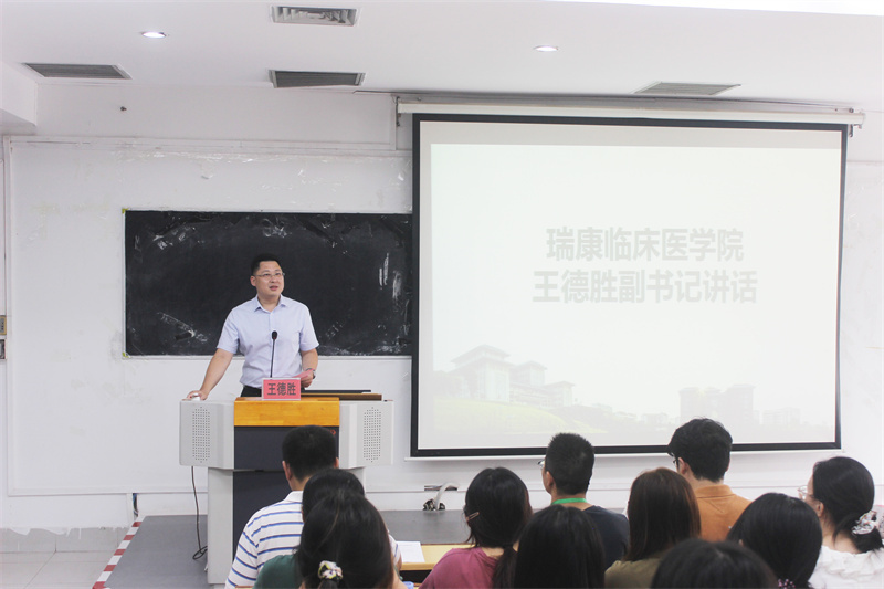 王德胜表示,同学们在扎实掌握专业知识的同时,要时刻牢记作为一名医者的初心与责任。他要求同学们首先要坚定信念,锤炼意志,主动调适好心理状态;其次要发扬勤学苦练的优良作风,全面提升综合素质;最后要坚守道德底线,展现新时代医学生的良好风貌。