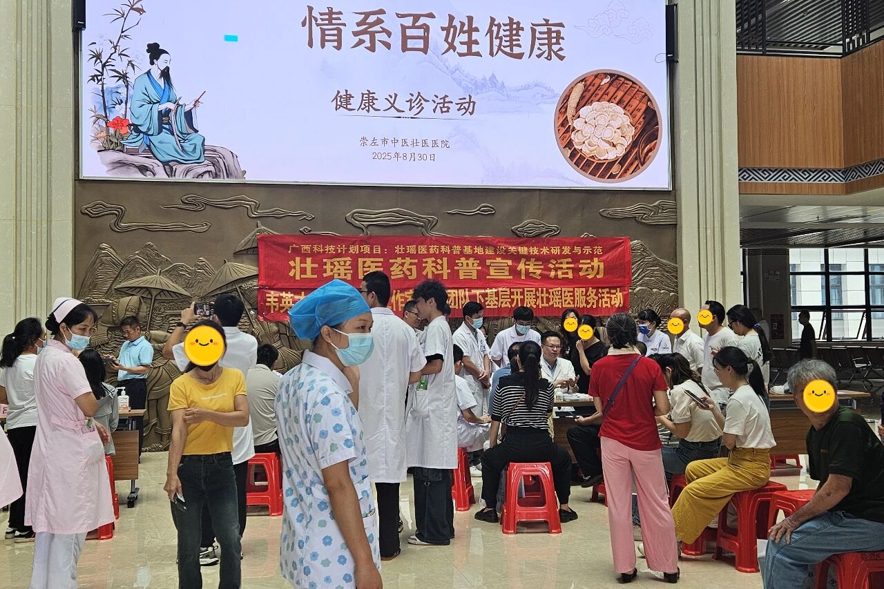 义诊活动吸引了众多市民前来咨询就诊。韦英才带领团队成员耐心询问病史、细致查体,针对中风后遗症、颈椎病、腰腿痛、失眠等慢性病提供个体化治疗方案。同时,运用壮医经筋手法、壮医火针等特色疗法,为患者辨证施治,让群众切身感受壮医药“简、便、验、效”的独特优势。