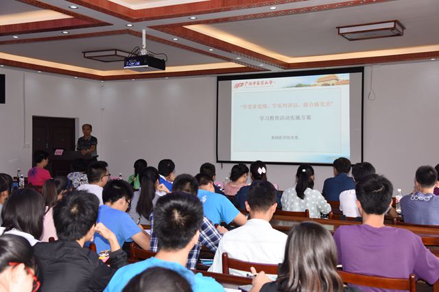 基础医学院各党支部书记登台发言,对各支部已开展和即将开展的“两学一做”各项工作进行了交流,大家都有信心把“两学一做”与本职岗位结合起来,履行共产党员的责任和义务,为本科教学工作审核评估而努力贡献力量。