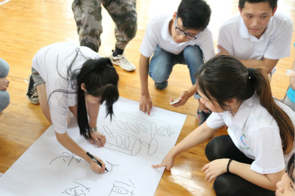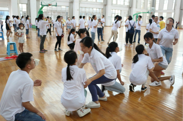 王碧艳副院长为活动开幕致辞,她对本次活动的目的以及活动的背景做了简要的介绍,强调素质拓展在提高大学生环境适应及团队合作能力等方面的重要作用。接着,欢乐激情的“小苹果”热身舞蹈后,竞争比赛性的“团队展示”、“心有千千结”、“水杯传情”、“众志成城”等素质拓展游戏陆续上演。整个活动过程,师生一起并肩作战,激情似火如骄阳,有快意也有失意,赢了爽朗大笑真臂欢呼;输了,欣然接受奋起直追。胜不骄,当拥豪情万丈,挺胸向前;败不馁,亦有万丈豪情,百折不挠。这动人的旋律,正是同学们奔跑的火热青春。
