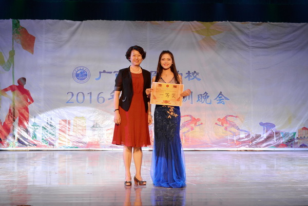 广西中医学校校长吴彬为一等奖获得班级颁奖