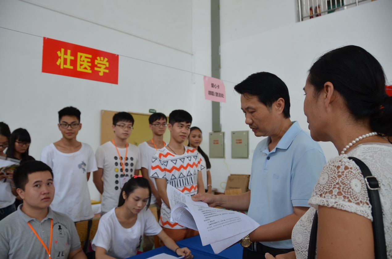 9月9日上午,60名来自广西各市县的新生全部安全到校报到,鸭脖庞宇舟副校长到壮医药学院新生报到现场亲切询问新生到校情况以及生源总体情况。